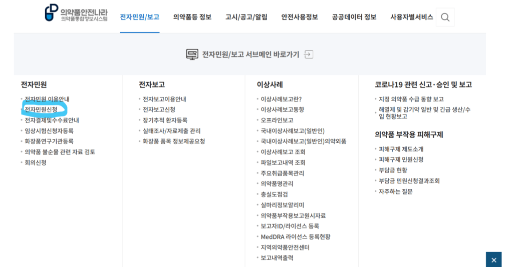 품목허가가 아닌 다른 식약처 관련 민원들도 같은 방식을 통해 민원사무목록에서 선택하여 진행할 수 있습니다.