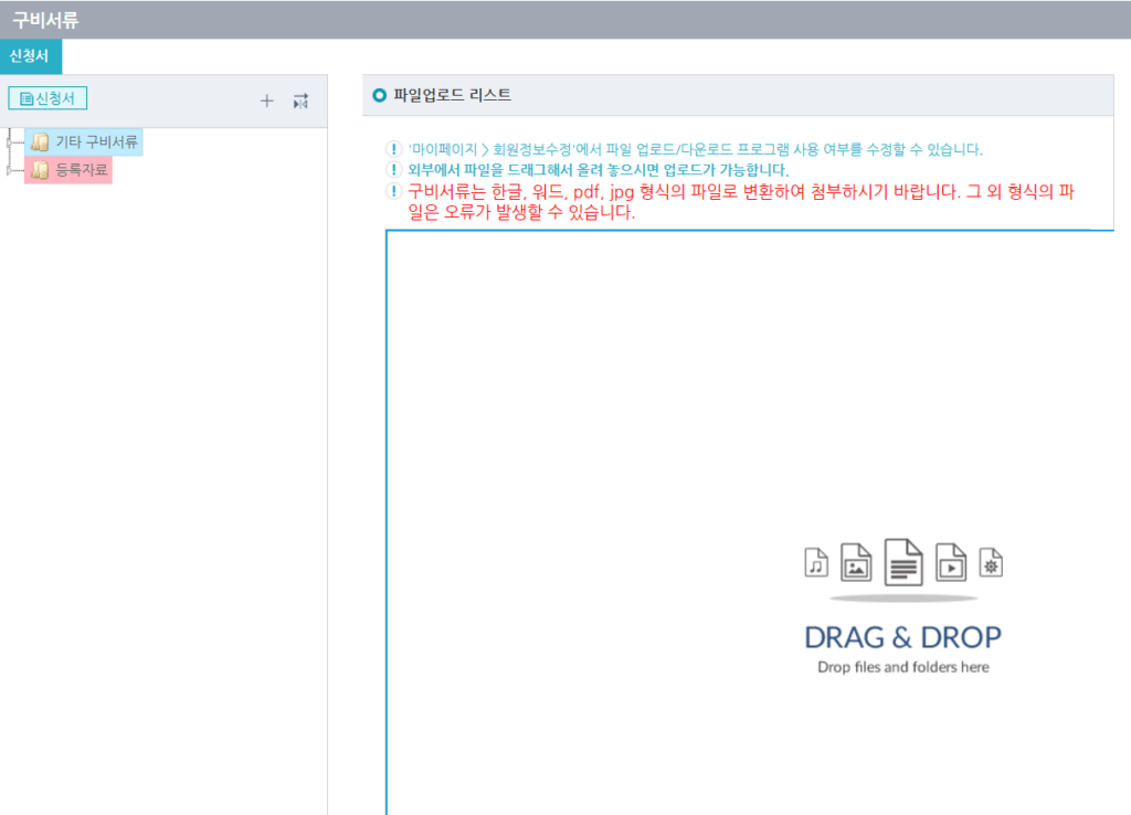 가장 아래 부분에 ‘구비서류’라고 되어 있는 버튼을 클릭하면 아래와 같은 창이 뜹니다.