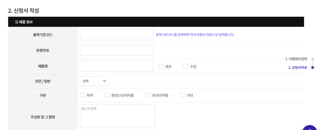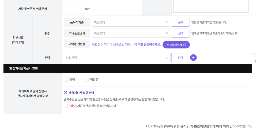 신청 양식은 오프라인으로 송부하는 것과 거의 동일하다.