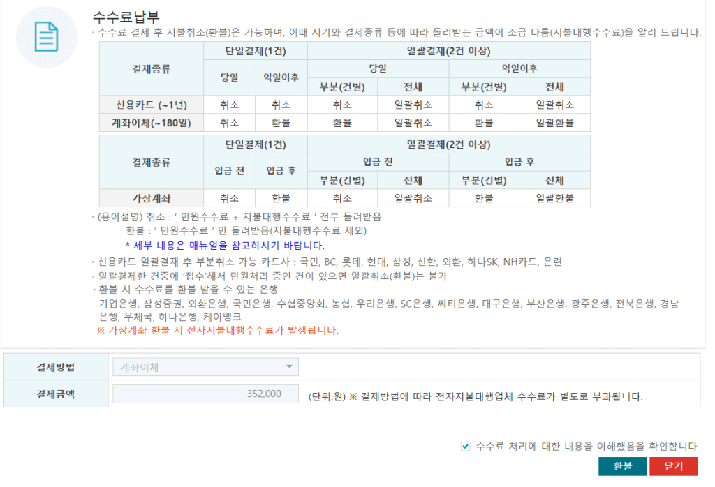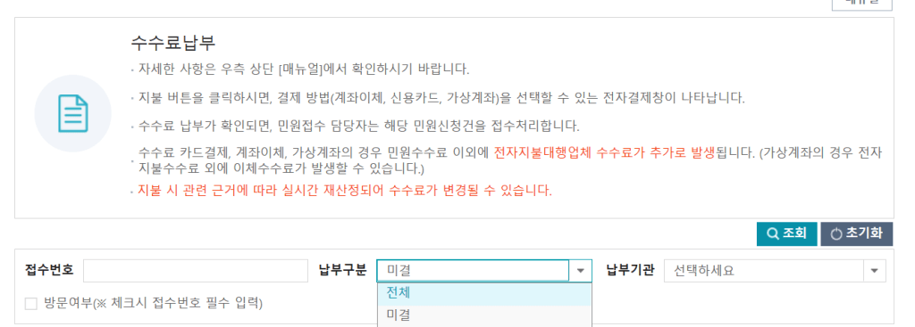 나의민원 > 수수료납부