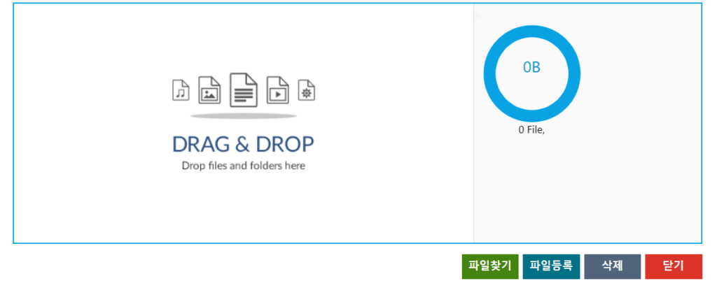 드래그 앤 드롭으로 파일을 업로드하거나, ‘파일등록’버튼을 클릭하여 파일을 업로드합니다.