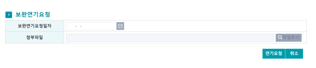 그런데 만약, 제출해야 할 자료를 기한(보완예정일자) 내에 준비할 수 없다면 보완 기간을 연기할 수 있다.