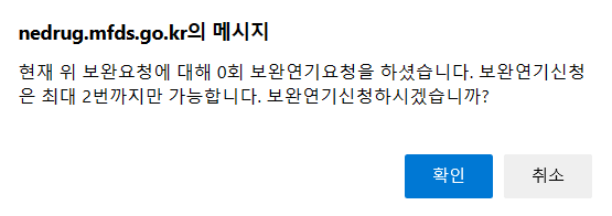 1. 보완연기요청일자(60일 이내)를 설정하고,(60일은 기본기간이고, 더 길게 설정할 수 있지만 식약처 담당자와 미리 이야기를 하는 것이 좋다.)